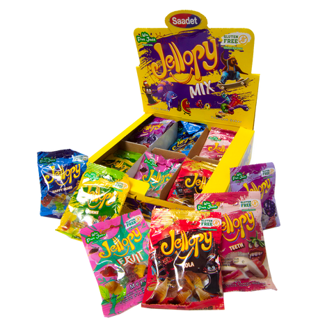 Get ready to spread the joy! Our Jellopy Mix mini packs are the ultimate party-starter - 36 individual 15g packs of pure gummy goodness that practically sell themselves.